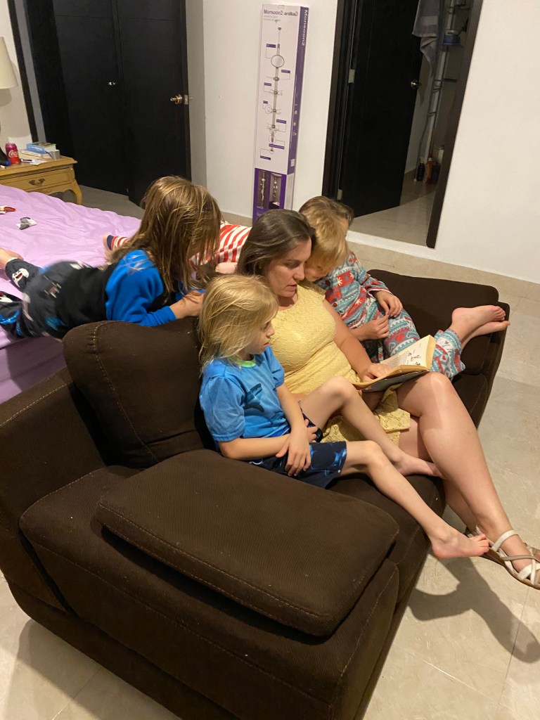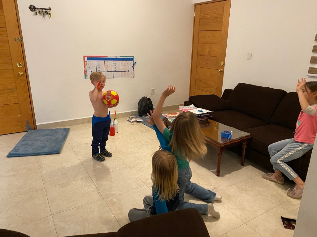 After playing soccer, we went home and let the kids watch a few movies on YouTube. They watched “Super Libro”, otherwise know as “Super Book”. They kind of enjoyed it. Bonnie made shrimp fried rice for dinner and then we put the kids to bed. *