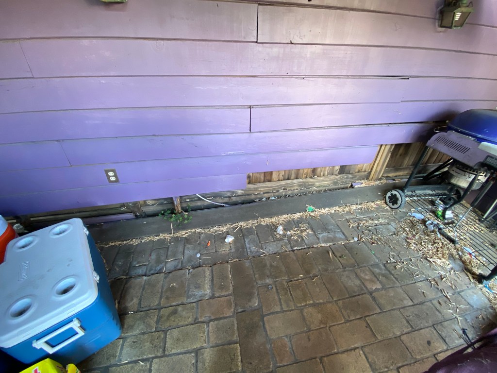 It’s not a great before and after but notice the light wood in the photo of the right at the bottom. I also reinforced the railing on our out door stairway. All the while I was also working at the office and cleaning that out a bit.