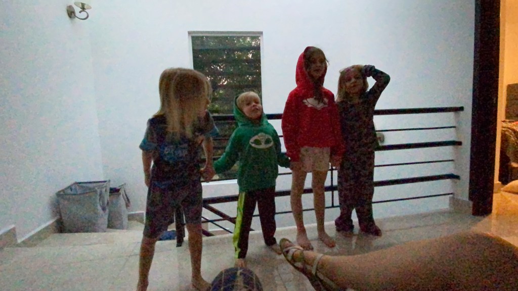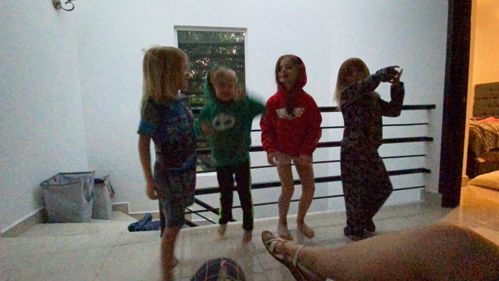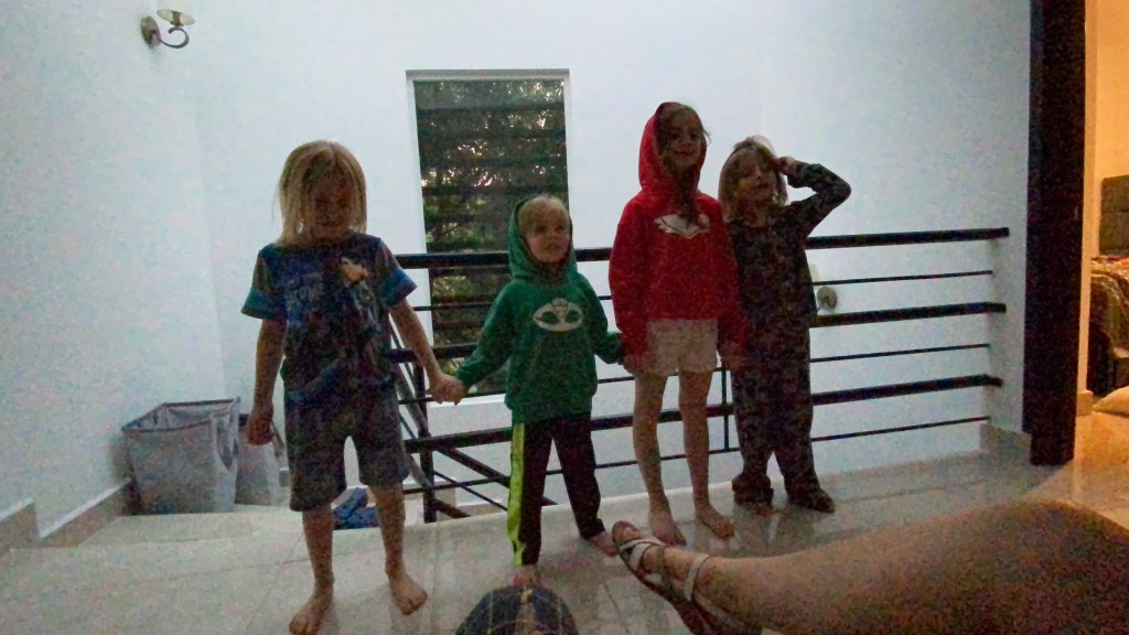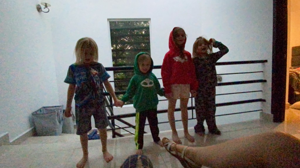 We had chicken and waffles for dinner I’m told. We put the kids to bed, and by the time we laid down in bed I was wide awake. My oldest son, while I was putting him to bed, asked about how many pyramids I’ve visited, I said 7. I showed him the photo below of me and his mom at the great pyramids of Giza. I also showed him our trip to the Amazon rain forest. He doesn’t want to go to either. 😀