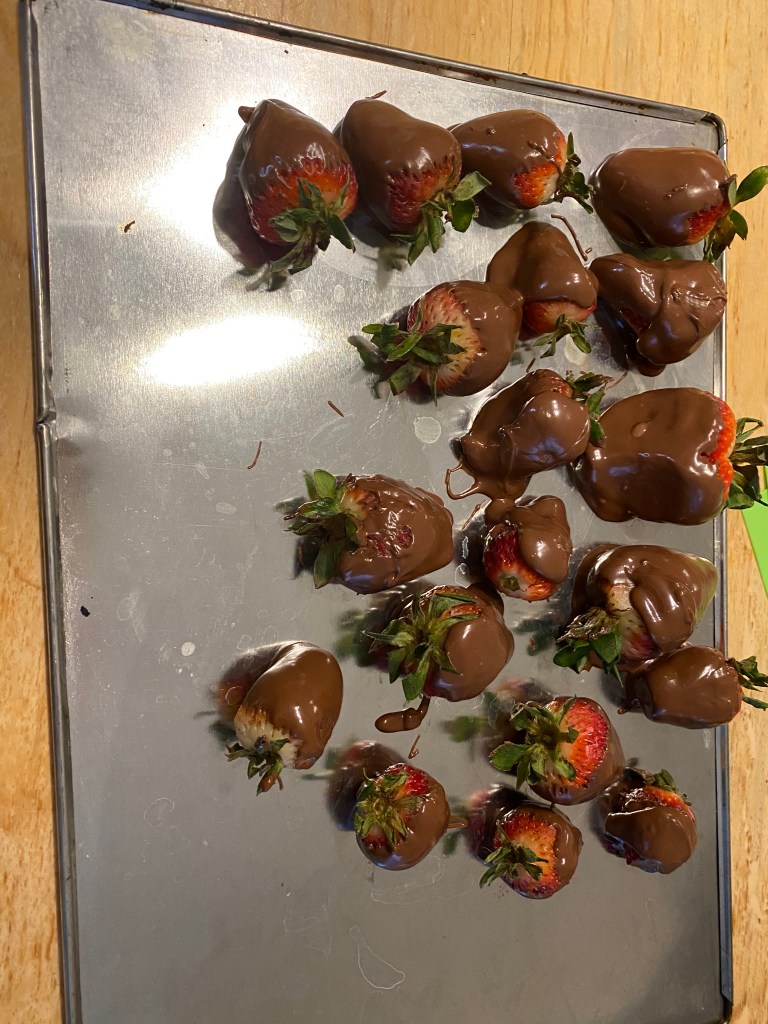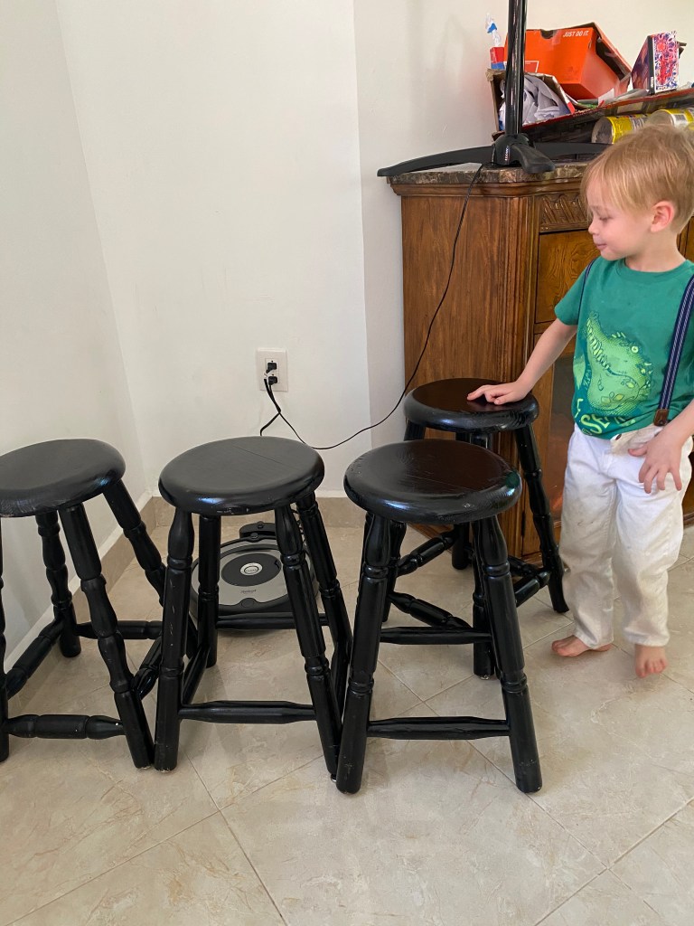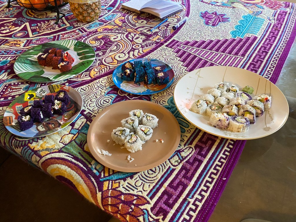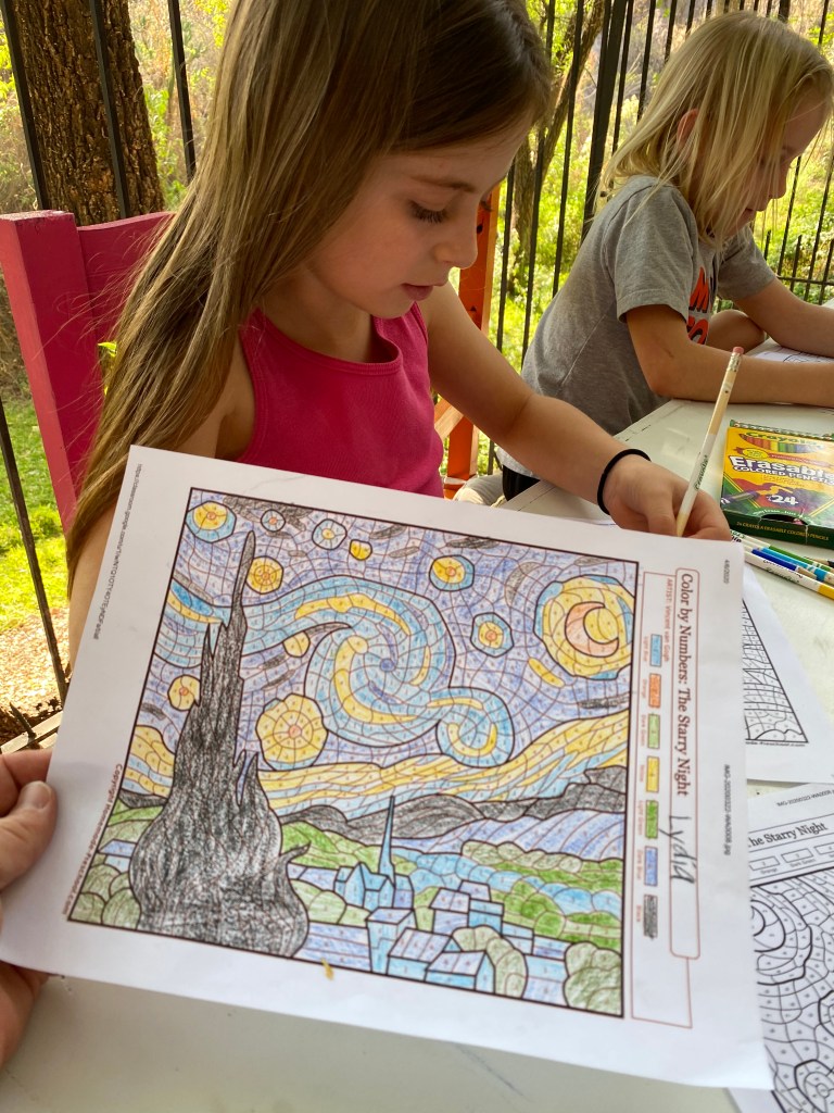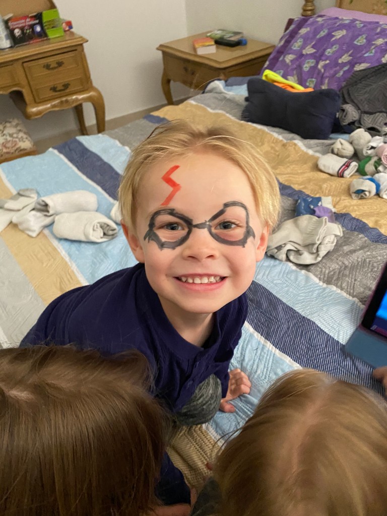 We celebrated Easter today. We stayed up very late and woke up very early. Growing up, my parents would get us Easter baskets and we would wake up with a jelly bean trail from our bed Tom our basket. So we have been doing that with our kids. We couldn’t find jelly beans here and with the shelter in place, didn’t feel like driving all over to find them. So we used chocolate eggs.