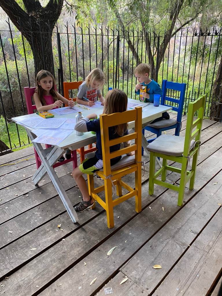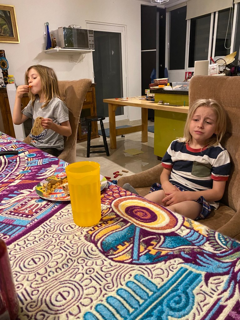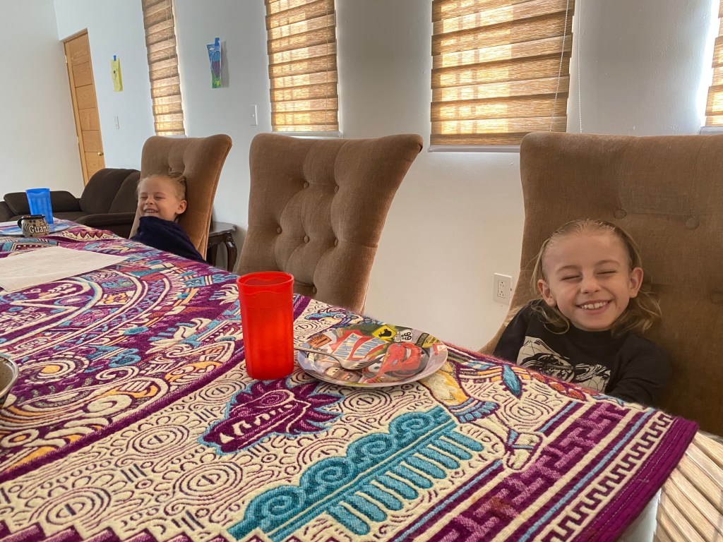 We logged onto Facebook for our church here in Mexico and the kids made a craft that Bonnie organized. Then right after church here, we logged onto our home church in Castro Valley and watched church there. We then broke out into discussion groups using zoom and were in a group of three other people, the former senior pastor who married us, a woman we had t met yet, and our close friends from home. It was really nice reconnecting with them and telling them what we need prayer for here in Mexico.
