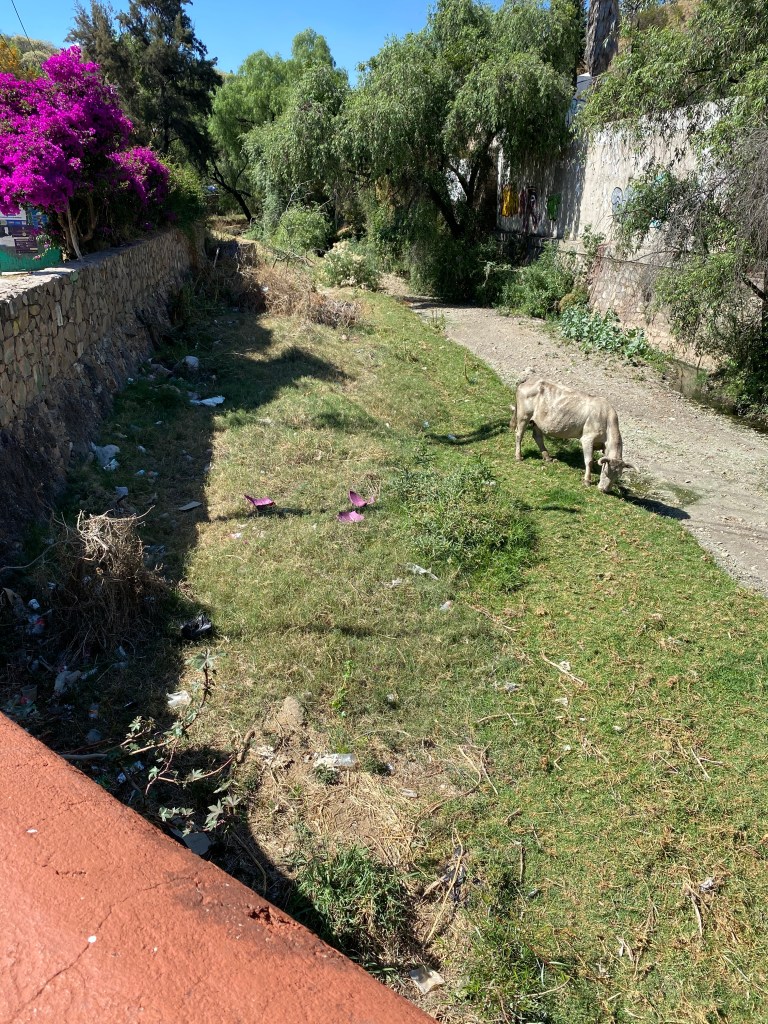 We got to bed at a decent hour and were sleeping great. Then a loud noise that shook our house woke me and Bonnie up. It was a cow mooing. Thirty minutes before I had some broken sleep and looked outside to see a bull a cow and a calf walking up our street.