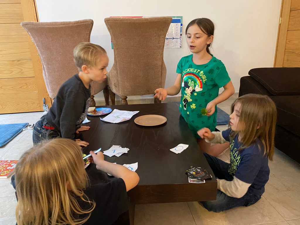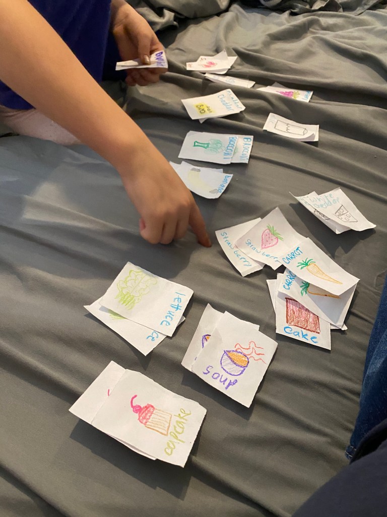 My children do not own a “Go fish” card game, so they made their own and I played that with our oldest.